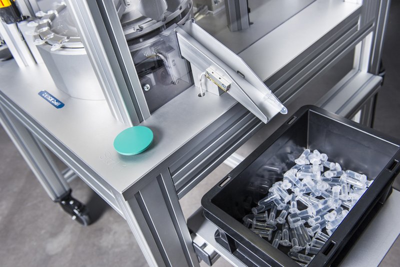 Die Filling-Station ist eine Vorrichtung zur Befüllung von Ampullen und Flaschen. Ein Drehteller bietet Platz für 20 Ampullen. Die präzise Dosierstation verschließt die Ampullen automatisch. Ein Lichtgitter gewährleistet die Arbeitssicherheit. Die Ampullen werden über eine Rutsche ausgeworfen und gezählt. Die Bedienung erfolgt über ein hochauflösendes Touchscreen. Die bebilderte Step-by-Step Bedienungsanleitung ist mehrsprachig.